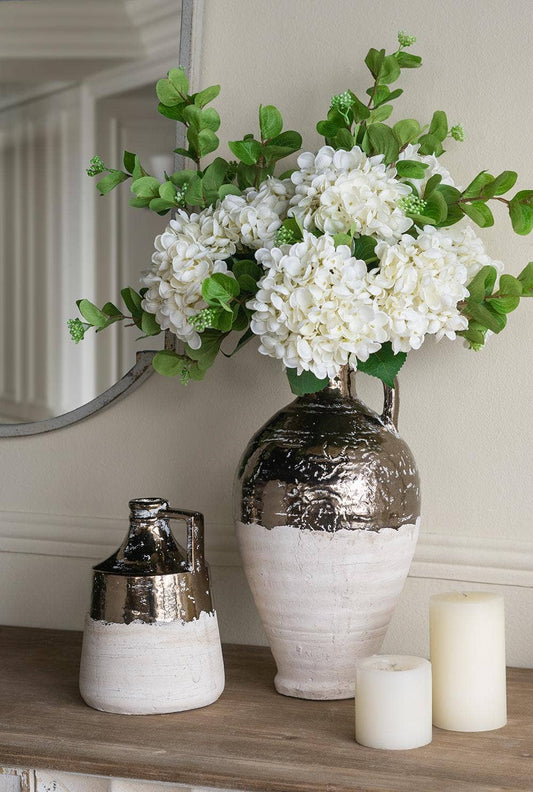 D8x15" Wide Terracotta Jug Vase w/ Metallic Bronze & Tan