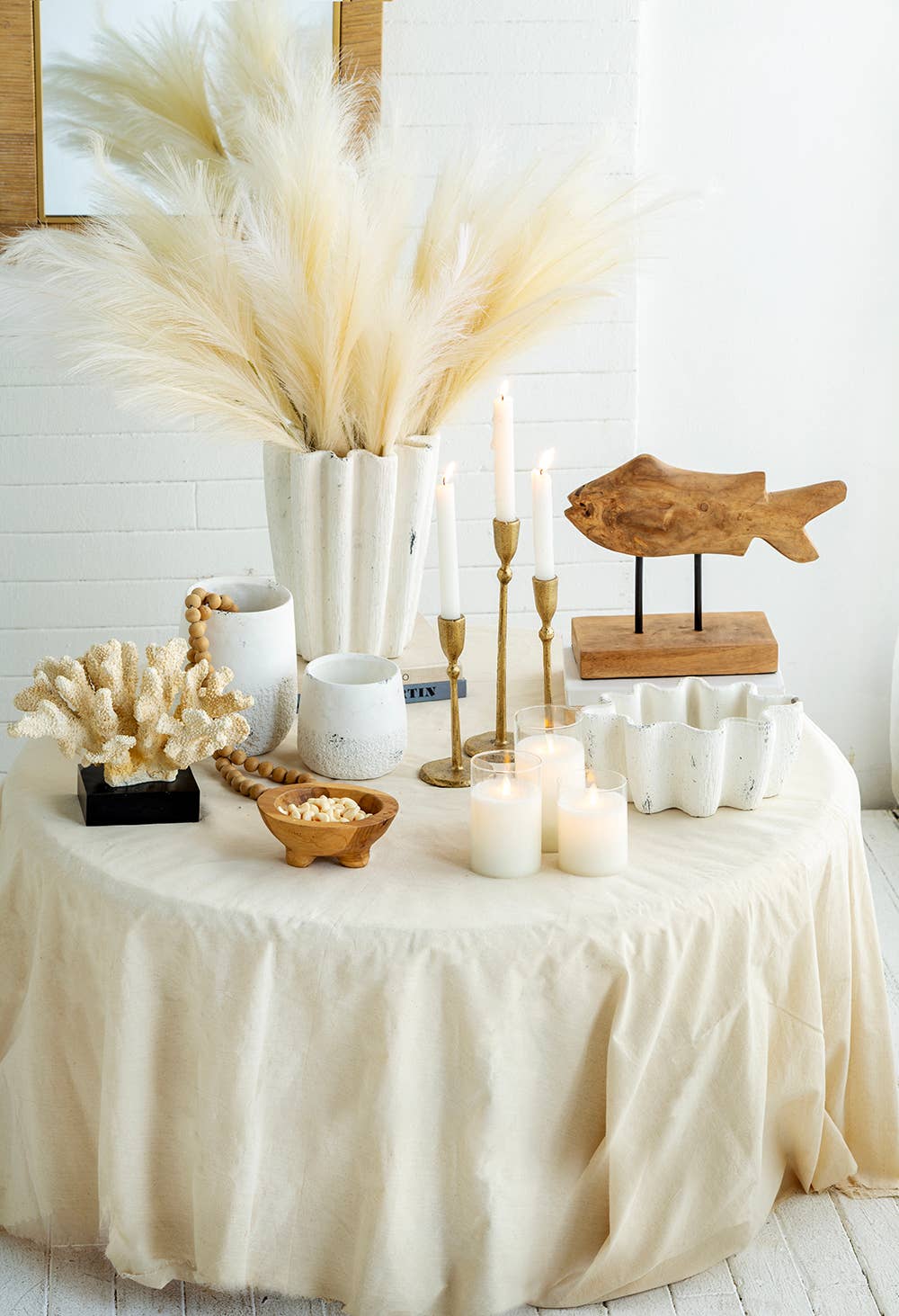 Elevate your decor with this beautifully crafted cement bowl, featuring a rustic white finish with a weathered, distressed look. The scalloped edge design adds a touch of organic elegance, with subtle black speckles enhancing its vintage charm. Perfect for holding small plants, candles, or decorative items, this versatile bowl brings a natural, earthy vibe to any space. Ideal for displaying on a coffee table, shelf, or as part of a centerpiece, this cement bowl combines durability with timeless style, adding a chic, rustic accent to your home.