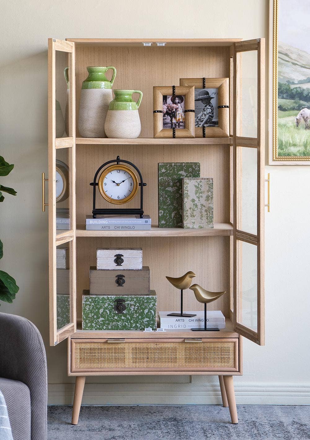 Showcasing the beauty of earthy design, this vase boasts a distinctive take on the classic jug silhouette, complete with a rounded base and a short handle. Finished in a blend of glossy green and natural tan tones, it will serve as the perfect backdrop for vibrant floral arrangements, catching the eye from any tabletop, dresser, or sideboard.