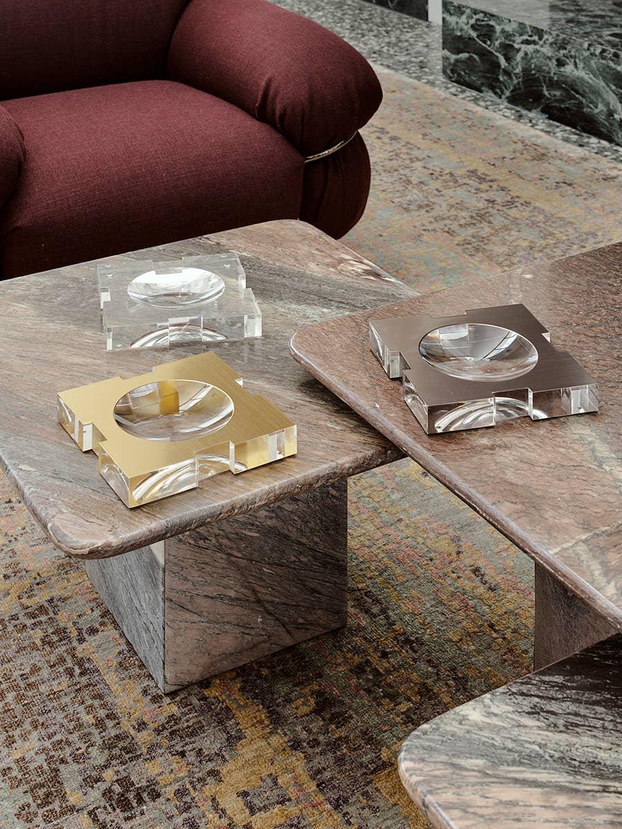 In brushed platinum (to give your sparkly pieces a little extra shine), brushed gold or clear acrylic, this glamorous accessory will bring a little hot stuff into your home. Pair with the smaller twin for a stunning ensemble.