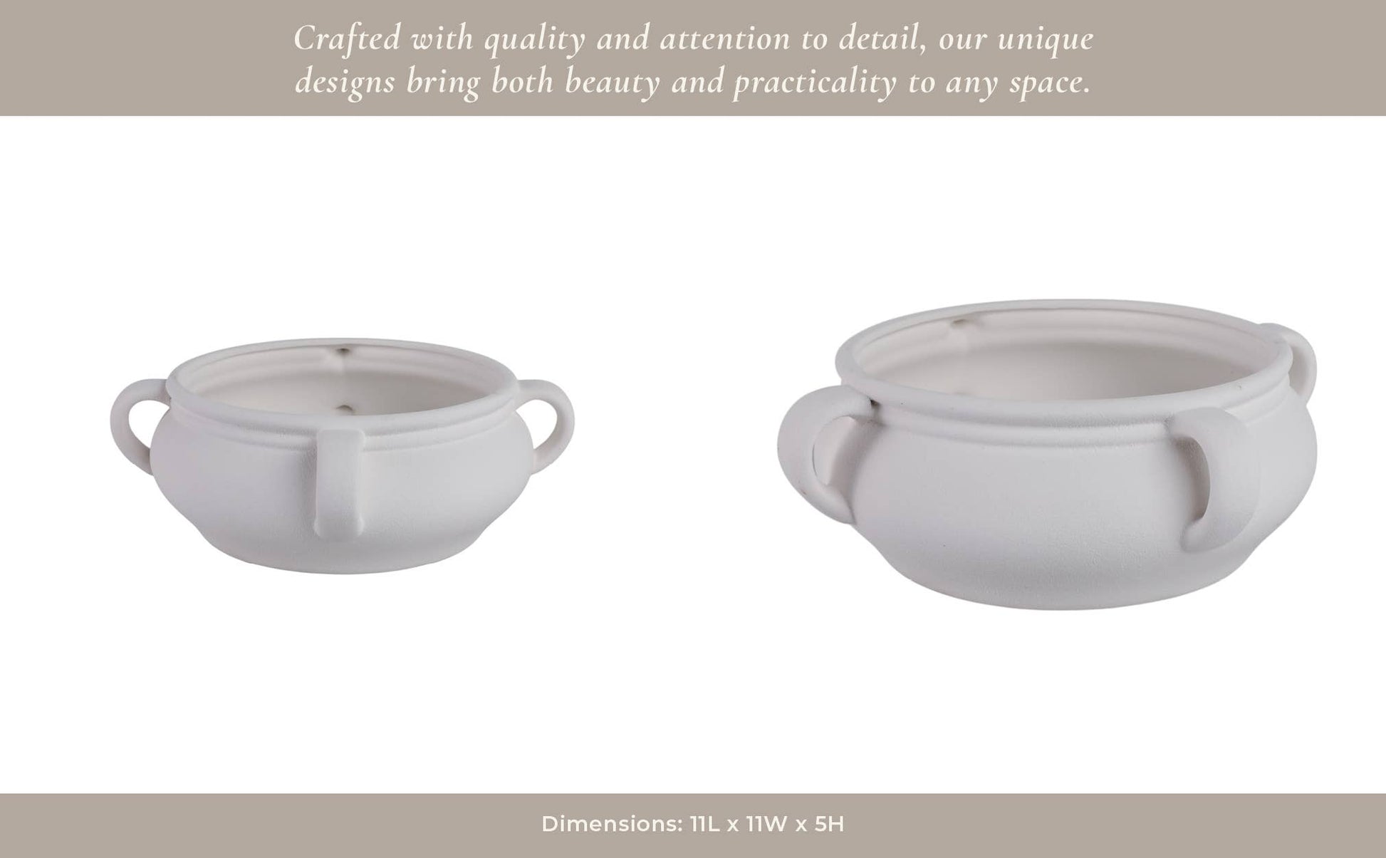 Ceramic Modern Textured Three-Handle Bowl - White, 11 in.