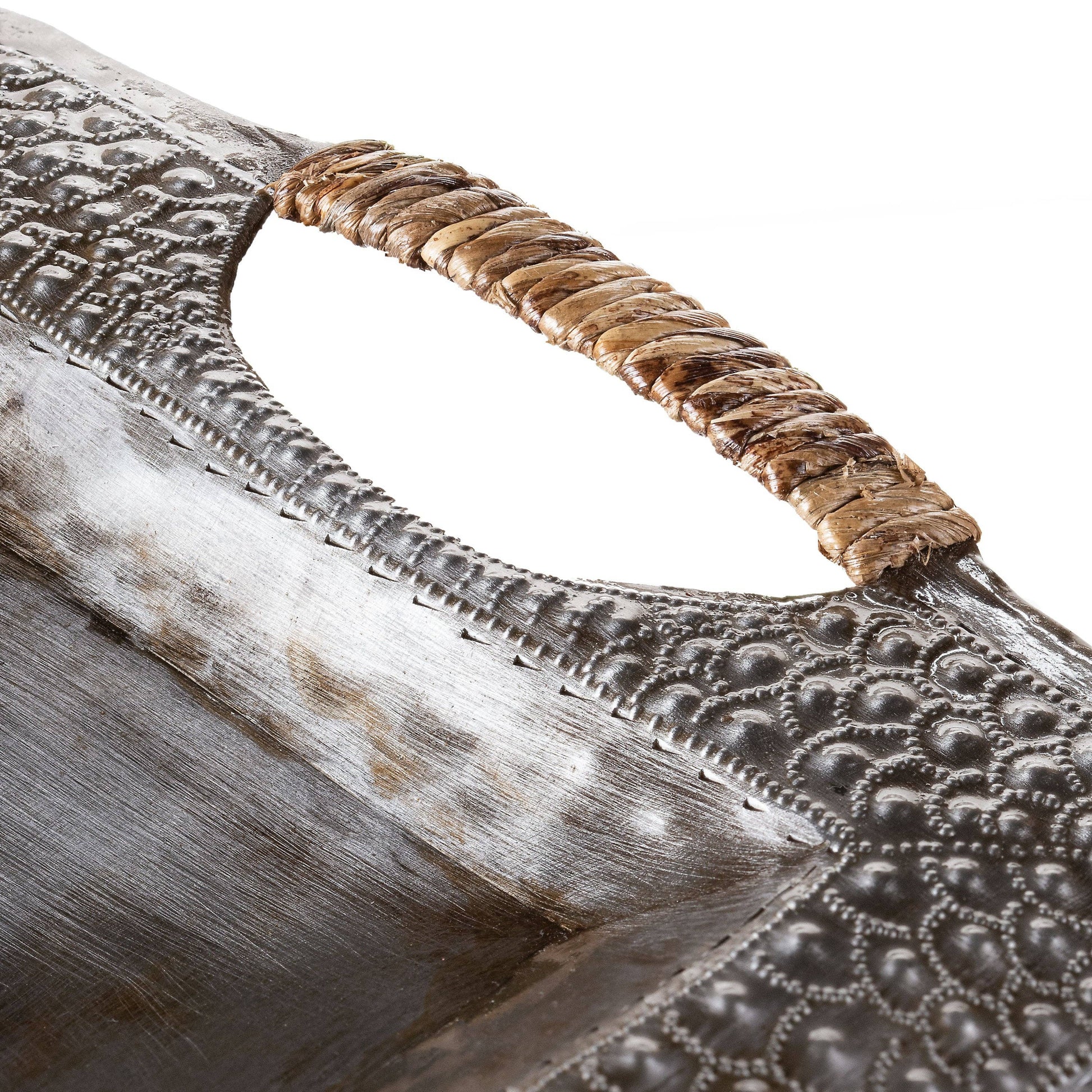 Crafted from recycled 55-gallon steel drums by village artisans in Haiti, these stunning trays are truly one-of-a-kind! The process of turning sheets of metal into beautiful art is all done by hand. Steel drums used to transport oil into the capital of Haiti are cut, the oil is burned off to clean the metal, and then flattened in order to create stunning and functional, upcycled art.