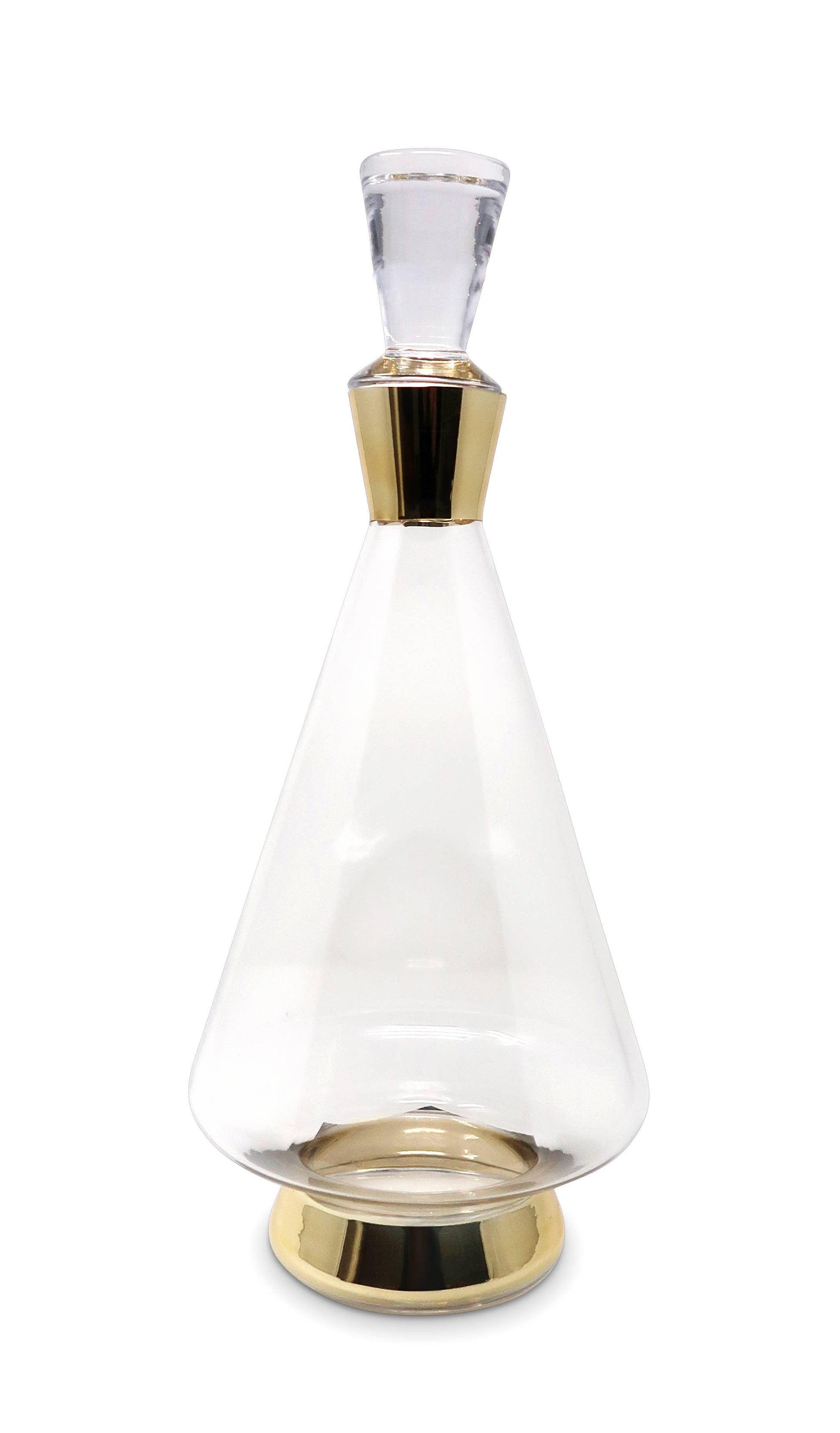 Enhance the presentation of your home bar with our exquisite glass decanter. The sleek gold base and lid add a touch of luxury, while the glass body displays your choice of beverage. Ideal for entertaining guests or as a thoughtful gift, this decanter is a must-have accessory for any home bar.