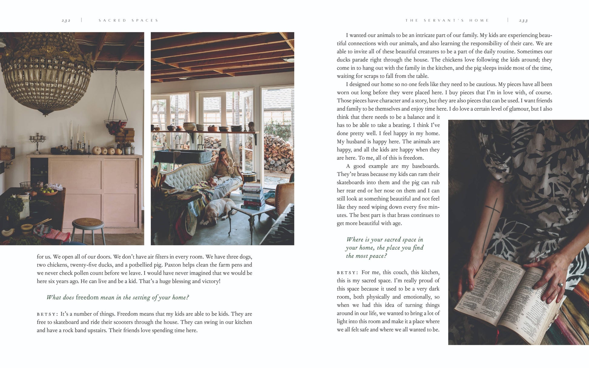 Sacred Spaces takes readers on a beautifully photographed journey inside fourteen homes, from North Carolina and California to Canada, France, and Morocco, as Summers uncovers the vulnerable stories behind each one: a mother who used her kitchen to heal her son with food; a woman who found her sanctuary after overcoming childhood abuse. She even offers a tour of her mother’s home as well as her own. Along the way, she identifies the types of sacred spaces people have created.