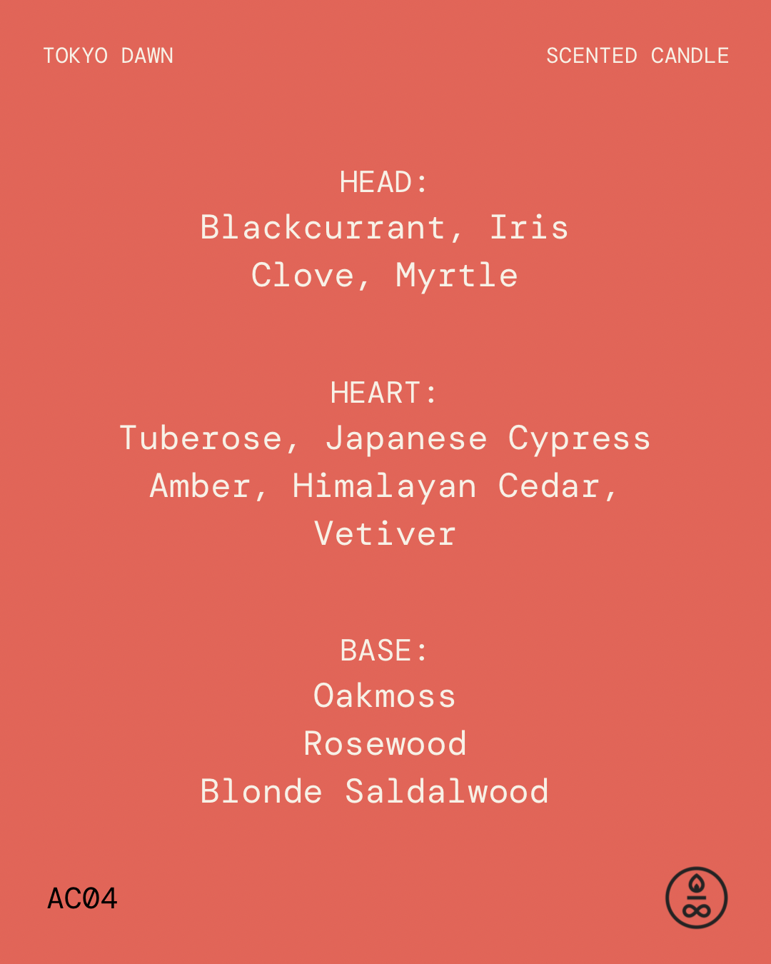A raw and intoxicating scent that pays homage to balmy nights when the scent of blooming tuberose fill the air. This heady accord intertwines with dense notes of aged woods, incense, musk and tobacco reminiscent of the winding back-streets of Tokyo in the hours before dawn.